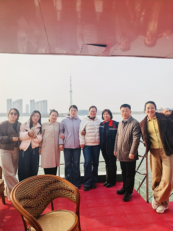 随后,队伍转场至成武县蓝水湾生态旅游区,女职工们结伴登上游船,开启惬意的环湖游览之旅。船行水上,景区风光尽收眼底,新绿的树木、澄澈的湖水与明媚的春光相映成趣。大家卸下工作的疲惫,谈笑风生,尽情享受春日的美好,用镜头定格了欢声笑语,用合影记录了温馨瞬间。游船女职工们在游览全程中精神焕发、神采飞扬,充分展现出新时代女性昂扬向上、乐观进取的精神风貌。